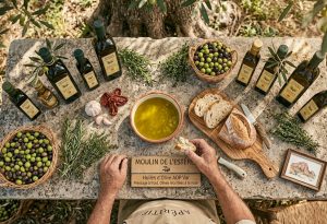 Dans la région du Var, découvrez Moulin de l’Estérel. Ce producteur est spécialisé dans la production d’huiles d’olive AOP. Son point fort : Pressage à froid, olives récoltés à la main